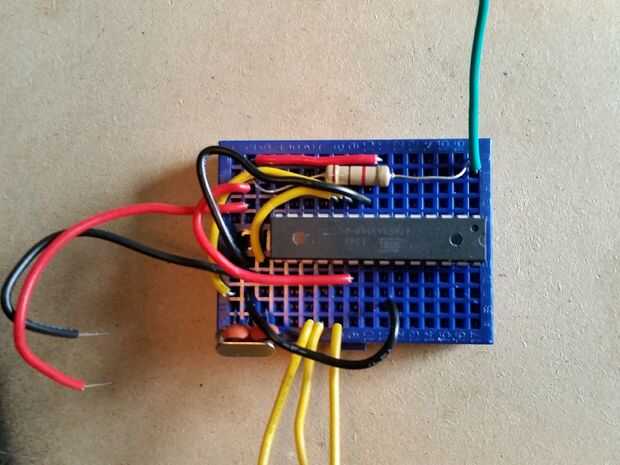 A continuación se programa la nueva atmega328p con el código del cubo. La forma más sencilla de hacerlo es tomar un par de pinzas y tire suavemente el microcontrolador de Arduino solo usaste para grabar el bootloader (no te estas virutas mezcladas ahora) y el intercambio en el nuevo microcontrolador en el zócalo del IC de Arduino. Estos dos chips atmega328p debe ahora idénticos salvo por lo que está programado en ellos (ambos tienen el mismo bootloader aunque). Abrir el código del cubo y subirlo a la Arduino como lo haría normalmente. Luego levante suavemente hacia fuera otra vez (no doblar pernos tanto como sea posibles) y de intercambio sobre la parte posteriora original en. Ahora tienes un microcontrller completamente programado con el código del cubo en él. Una vez que usted coloque en el circuito que construiremos más adelante será todo listo para ejecutar.