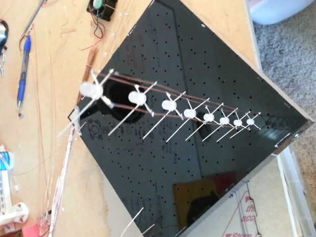 - Cada otra hoja de columnas (a partir de la primera hoja) debe tener los pines comunes conectados con hileras de alambre de cobre. Ver más abajo ***