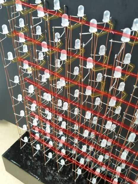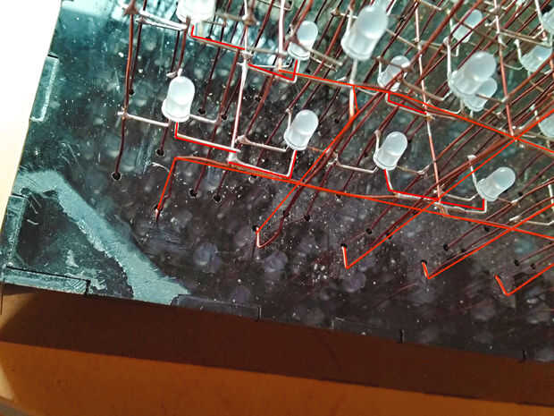- La soldadura de cada LED (3 puntos por el LED, 8 LED por columna)