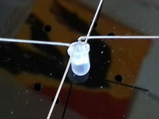 - Pop los LED en la plantilla (en la orientación se muestra a la parte común de plomo (más largo))