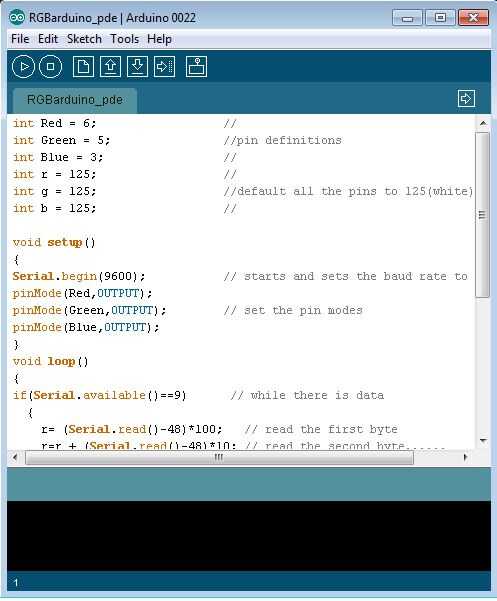 La broca sólo torpe en el bosquejo es la lectura en los datos en serie. El Arduino sólo le permite leer en serie de datos byte por byte, por lo que para leer los números, tienen que agregarse individualmente a su total y ponderado según su orden (100, 10, 1) .para más detalles, ver el código. Los conversos-48 los caracteres ASCII que el Arduino recibe valores de int (0 en ASCII es 48). En algunas de las fotos, puedes ver que tengo una pantalla conectada a la placa. Esto es para mostrar los valores r, g y b en y es útil para la depuración. Código para esto también está en la parte inferior de la página