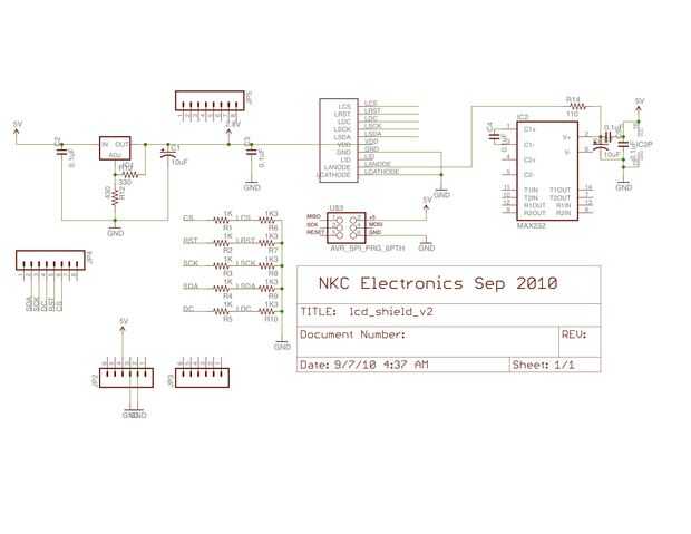 El módulo de LCD tiene un fondo hecho de 2 LEDs blancos requiere 9V aproximada con un 19mA máximo actual para trabajar. Como este nivel de voltaje no está disponible en la placa Arduino, usé un ST232 RS232 driver para obtener 8V DC de la fuente de alimentación de Arduino 5V estándar. El circuito del conductor de luz de fondo ahora se incluye en el escudo de RGB LCD principal PCB.