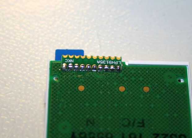 Aplicar alguna soldadura en uno de los pines del módulo LCD, usted puede elegir ya sea pin 1 o 10 (pin 1 es la de la derecha de la foto).