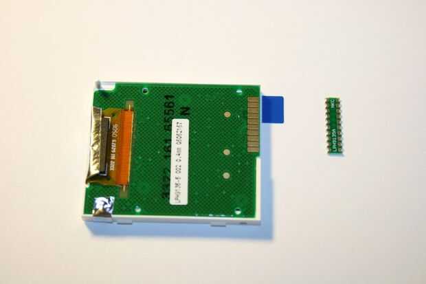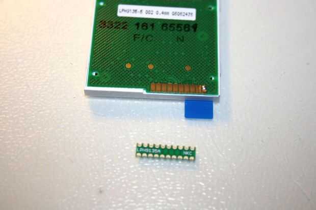 Una vez aplicada la soldadura, coloque el pequeño PCB fino y alinear las 10 teclas para las 10 pastillas en el módulo LCD. Calor el pasador que tiene la soldadura para unir la placa delgada pequeña (adaptador). Una vez que estés satisfecho cómo se alinea (Asegúrese de que las pastillas estén alineadas, para evitar cortocircuitos en las clavijas), el resto de los cojines de la soldadura.