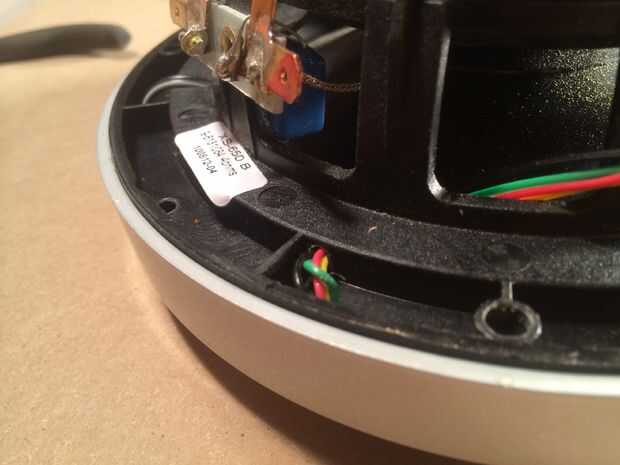 Pase los cables del LED a través del segundo 3/16 agujero perforado en el borde del altavoz.