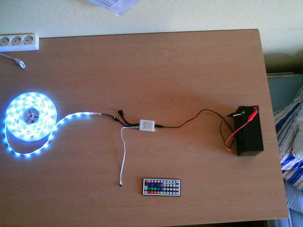 este proyecto es una forma sencilla para encender tu moto usando las luces LED del estante. He usado barras IKEA iluminación decorativa, que vinieron con una caja de control pequeño. Los controles incluyen un color de la rueda, se descolora y modos d