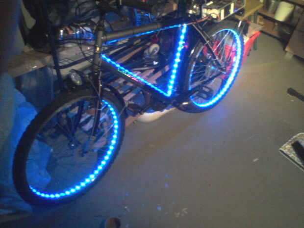 este proyecto es una forma sencilla para encender tu moto usando las luces LED del estante. He usado barras IKEA iluminación decorativa, que vinieron con una caja de control pequeño. Los controles incluyen un color de la rueda, se descolora y modos d