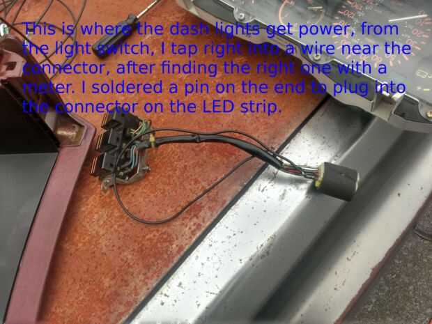 Lo importante aquí es que la estancia en lugar de LEDs, y que usted puede conseguir los 4 cables fuera después de guardarlas en. Puse un conector en la mía, por lo que pude desconectar y quitar el salpicadero.