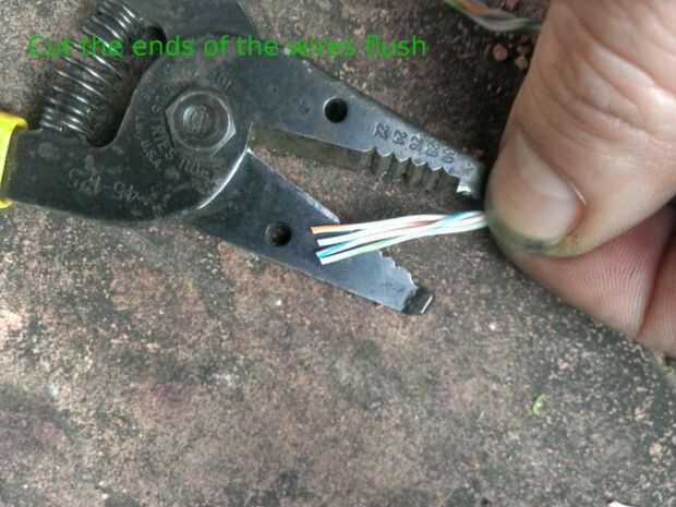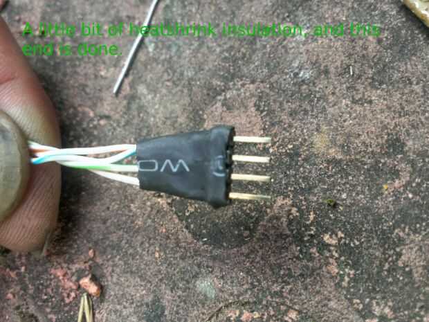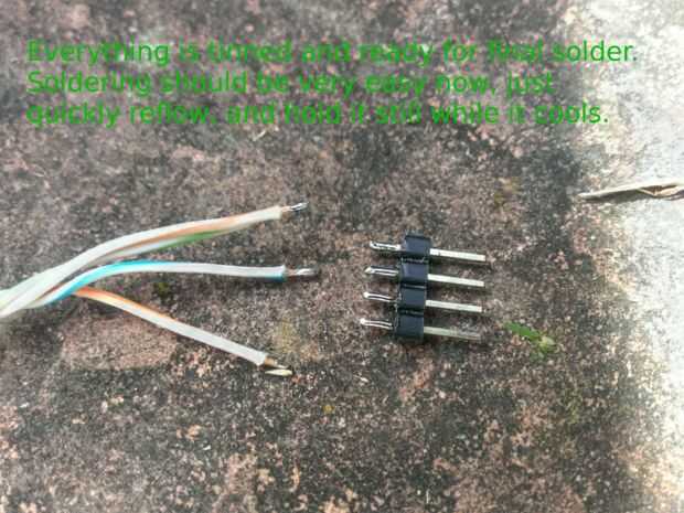 El cable tiene que ir hasta el final de cada puerta, lo que tiene una sección bastante larga de cable, o por lo menos 2 secciones de longitud media se unieron en el medio, en algún lugar cerca del controlador ojala. Hice conectores con barato pines SIP/los zócalos, pero usted podría conseguir como te apetece como te gusta, o incluso soldadura todo junto sin conectores. El cable ethernet tiene dos veces tantos cables como usted necesita, usted puede utilizar el otro ingenio conjunto ha otro regulador, si quieres lujo, podría utilizar el segundo set como para reparación o doble hasta el cableado en caso de que desee utilizar LEDs más.