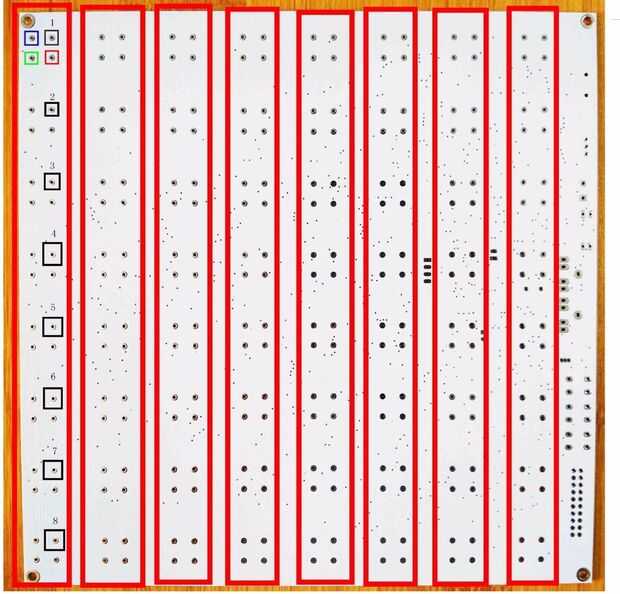 D. finalmente cortar todos los cable de pines extra y marco de eliminar lo PCB para la siguiente columna de led. La pierna del ánodo la placa de tierra voluntad soldarse cuando Asamblea a la Junta de PCB controlador.