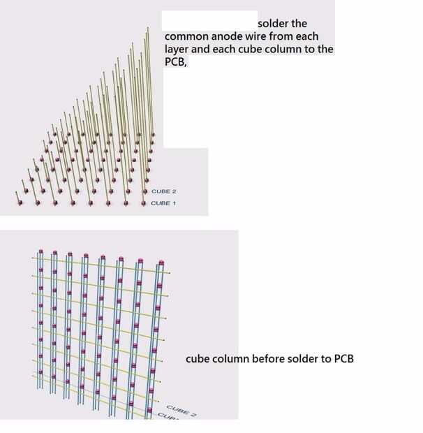 Finalmente puede de la soldadura de uno o más de alambre de cobre en la parte superior del cubo, conecte el cable de ánodo de cada capa vertical, esta alineación de espacio ayuda