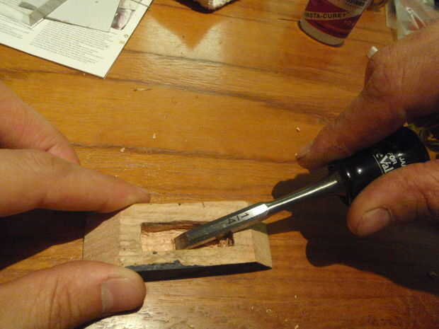 A continuación, marque las áreas (en la parte interna superior e inferior) que va esculpiendo para hacer espacio para sujetar la pieza de plástico, asegúrese de que todo va a las líneas hasta correctamente. Puede perforar agujeros en estas áreas para ayudar en el proceso de talla. Ya sea el superior o el inferior tendrá que tener una cavidad profunda para 'ocultar' el LED una vez en el marco. Si utiliza la parte inferior para este paso (como hice yo), la parte superior sólo tendrá un hueco poco profundo en la parte superior del marco para sujetar la pieza de plástico en su lugar. Que lado (superior o inferior) utilizan para ocultar el LED necesita un agujero perforado a través a la parte posterior del marco. Esto es para enrutar los cables hacia atrás y fuera de la estructura.