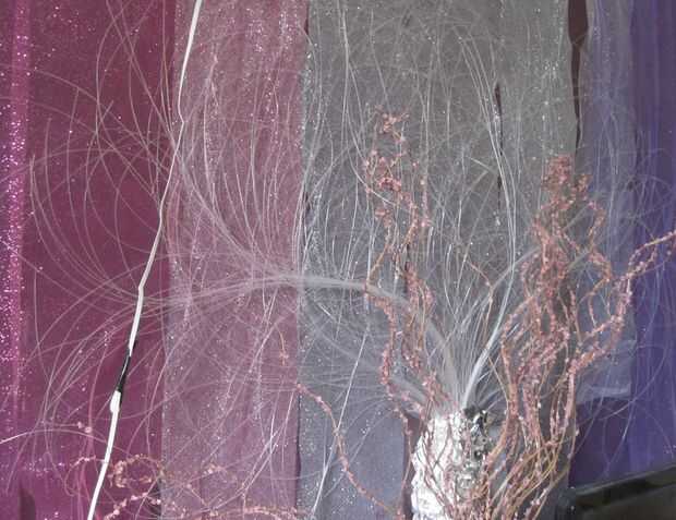 Tul - $5 - comprado en una tienda de artesanía. Es el material que utilicé para tejer los filamentos ópticos de fibra en la pared