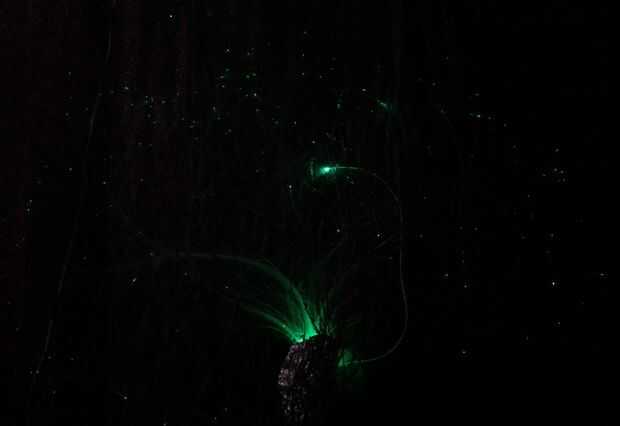 He conectado un video de la instalación así. Se ve mejor en persona, pero se puede ver moviéndose lentamente a través de una rueda de color.