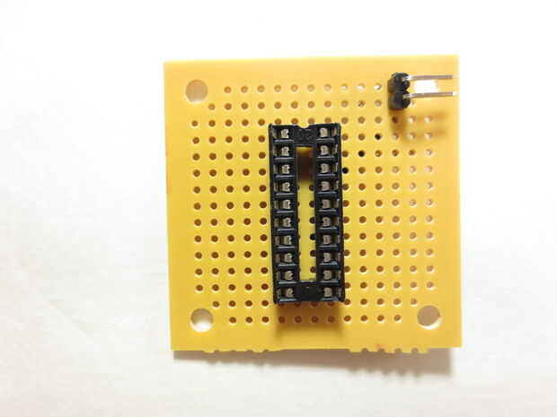 Ahora recuerde que nosotros estamos no realmente de soldadura para el ATtiny2313 sí mismo pero se suelda a su toma. Esto es por lo que podemos volver a utilizar el IC o reprogramar por acaba saliendo lo de la toma. Si usted suelda directamente a la junta tendría que desoldar todo para sacartelo.