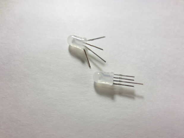1. Corte los cables cortos en las resistencias y los LEDs. Asegúrese de que dejar un cable un poco más largo en el LED para que sepas cuál es el ánodo común.