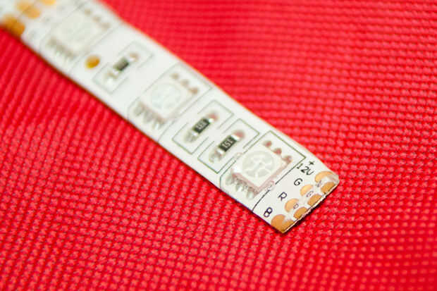 Construido utilizando un 24 canal alta corriente LED controlador USB para controlar la luz de tira del RGB LED de 12 voltios, en 8 grupos separados. Cada grupo tiene los PWM de 8 bits que puede crear más 16 millones de colores. Y es conducido en comp
