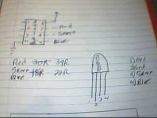 Ahora yo did ' t tienen los valores exactos por lo que tengo cerca. Usé un 39 ohm para el rojo y 22 ohmios para el verde y el azul.