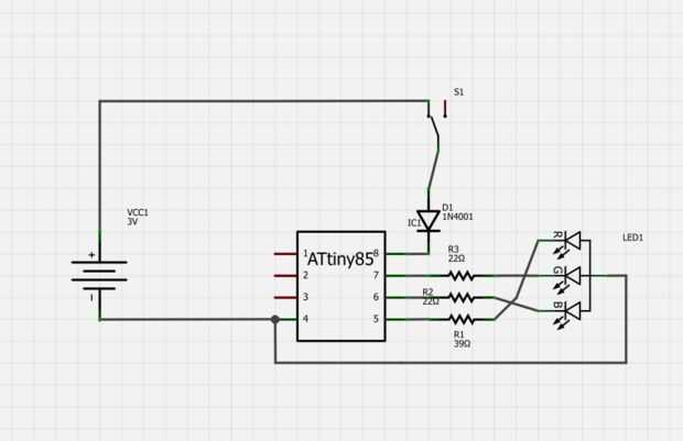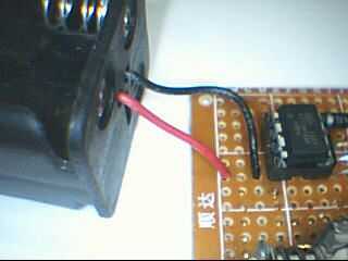 Estoy ejecutando este de 4 pilas AA cual 6v. El voltaje Especificaciones para este chip es 2.7v a 5.5v. Así que he añadido un diodo 1N4001 en consonancia con el VCC de la viruta para sobre una gota de .6v. Que la tensión 5.4v. Ahora dentro de especificaciones. Aunque en la parte superior de la gama de tensiones.