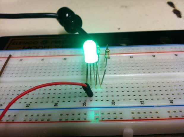 Ahora con el cable de tierra a cada cable de la resistencia, cuenta de que el color cambia en el jardín botánico.