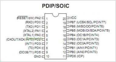 Ver la imagen adjunta de los pinouts ATTiny 2313: