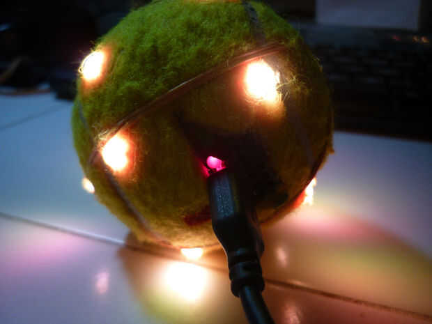 La pelota de tenis de LED RGB es completa. TPO apagado la bola Presione y sostenga el botón hasta que la luz verde se enciende, luego dejar ir. La bola debe se desvanece lentamente apagado. La pelota está apagado (el MCU está durmiendo). Para encender, pulse brevemente la tecla. debe encender ahora.
