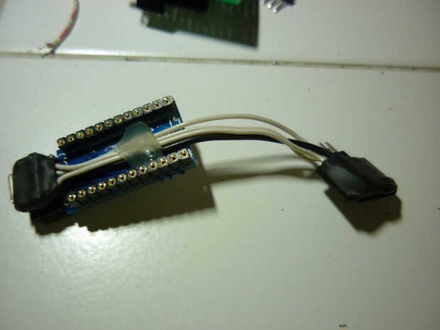 Entonces tomé el VIN, GND cable y alambre los dos indicadores LED y soldado el alambre a las teclas correspondientes en el conector MicroUSB VIN y GND. Yo Entonces superglued una azul y una Roja llevaron a conector/PCB y dos pines de los LEDs ánodo conectado a VIN. Entonces había suelda los dos cables del cargador a los LEDs.