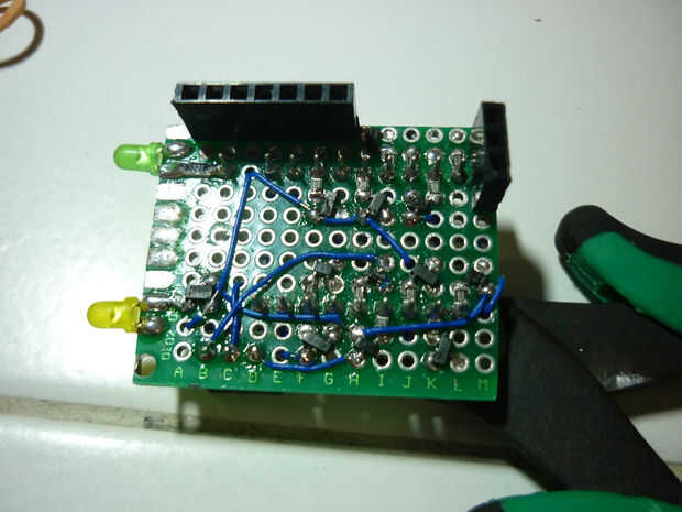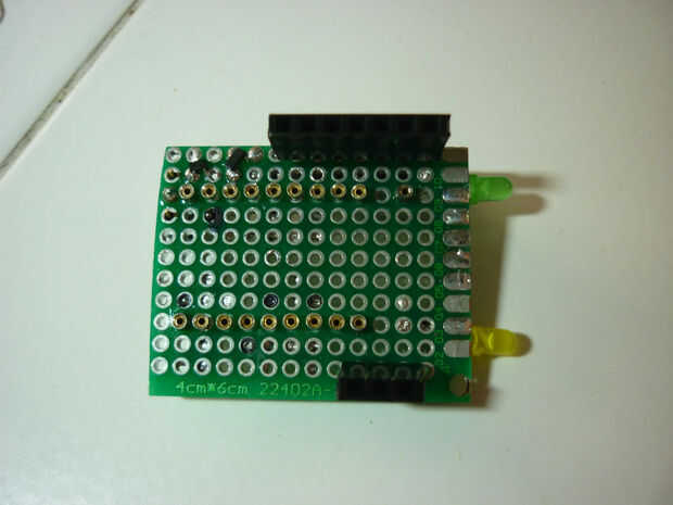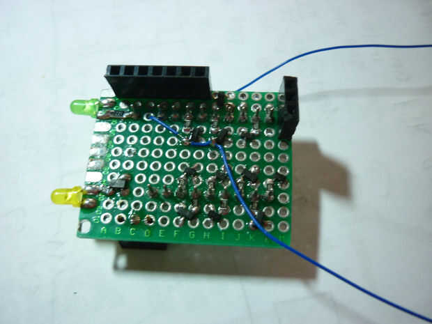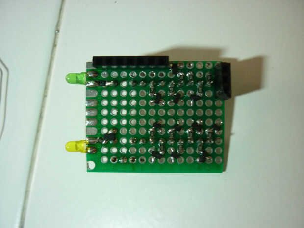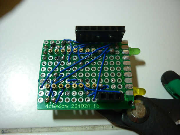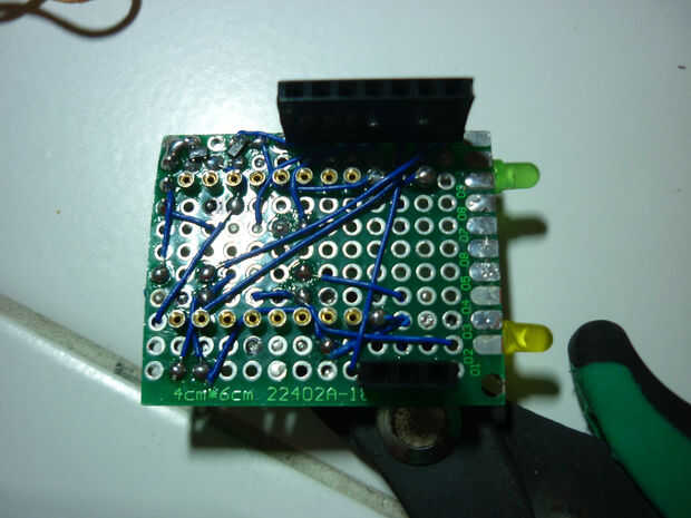 Después de eso encontrar un lugar en los lados también que pueden encabezados de montaje 1 x 7, para este uno que quieres soldar una tapa entonces soldadura de los pernos de cabecera segunda al pasador de la primera cabecera. Esto conecta los pins 7 ánodo de ambas capas juntas.