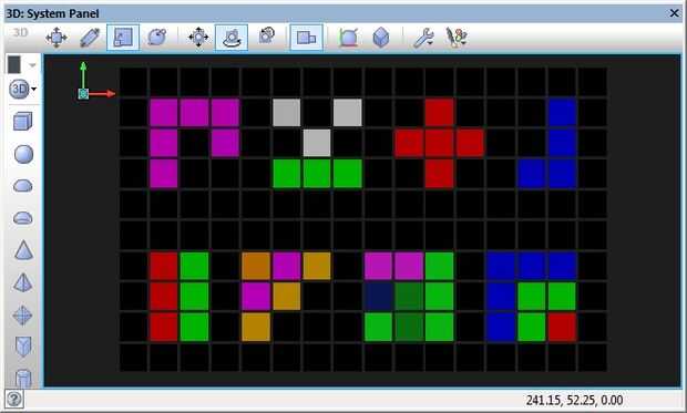 Como no tenemos una enorme cantidad de pixeles que he creado un simple icono para cada una de las funciones que quería añadir a mi mesa. Cada icono se encuentra dentro de una caja de 5 x 4 píxeles, permitiendo 8 elementos de menú. Elegí mi menú para representar lo siguiente: