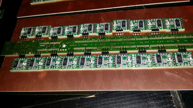 A continuación trabajó en pequeños lotes de tarjetas de 15-40 en un momento. Quisiera poner cada tabla a su vez en mi plantilla y pasta de soldadura se aplica a los cojines de montaje en superficie. Junto con mi pareja de pinzas cuidadosamente colocados cada componente en su posición en el PCB y presiona suavemente en la pasta de soldadura. Una vez que todos los componentes estaban en di cada tablero una rápida comprobación para asegurarse de no había perdido nada y luego las tablas directamente en el horno para cocer al horno. Pude hacer 20-30 nodos en una hora a mano pero con un adecuado montaje superficial pick & place máquina podría ir mucho más rápido.