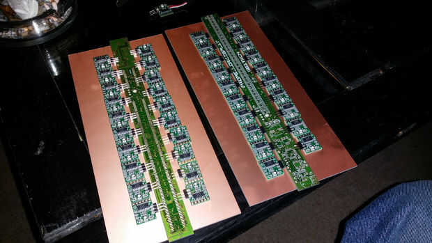 Mi plan inicial era tratar de ahorrar tiempo mediante la conexión de cada nodo utilizando cables de extensión de servos que compré de eBay. Sin embargo las cabeceras SIL tienden a moverse un poco durante el reflujo, lo que significa la conectividad era menos que ideal. También no utilice el tablero revestido de cobre como soporte en el horno como lo hice, apenas deforman en el horno y crea un desagradable hedor. Una baldosa cerámica o similares sería mucho mejor. Al final simplemente me dejó las cabeceras SIL y Soldamos las conexiones a mano después de horneado y esto me dieron mucho mejores resultados.