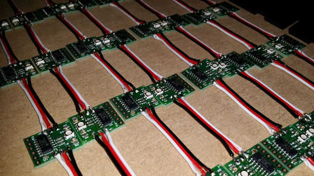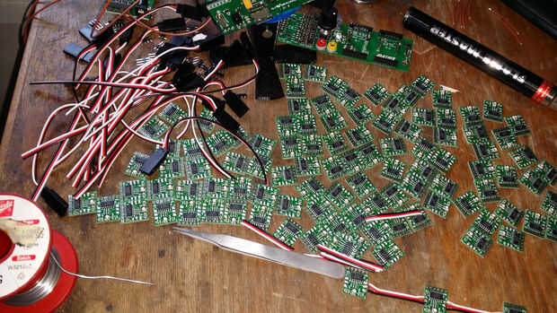 Ahora tenía una gran pila de nodo PCB todas esperando a ser probado y Unidos entre sí.