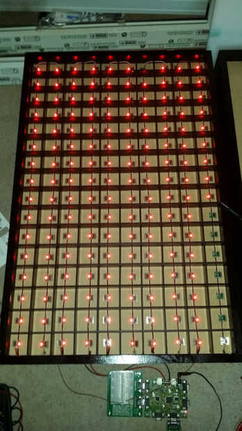 He presentado todas las secciones de 32 nodos en su lugar en la parte superior del compartimiento de la electrónica y entonces comenzó a resbalar las paredes de partición en lugar. Una vez que todas las paredes estaban en su lugar comencé a manipular los cables en los nodos para conseguirlos todos a sentarse tan plana como sea posible con su LED en el centro del compartimiento. Algunos de los ganglios externos tuvieron que ser pegada en posición pero traté de mantener la cola tan mínimos como sea posible para que los nodos podrían ser retirados y revisados en el futuro si algo va mal.