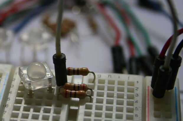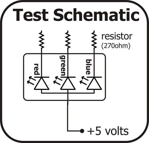 - Conecte un resistor limitador actual a cada uno de los tres cátodos