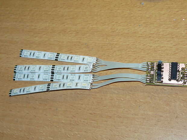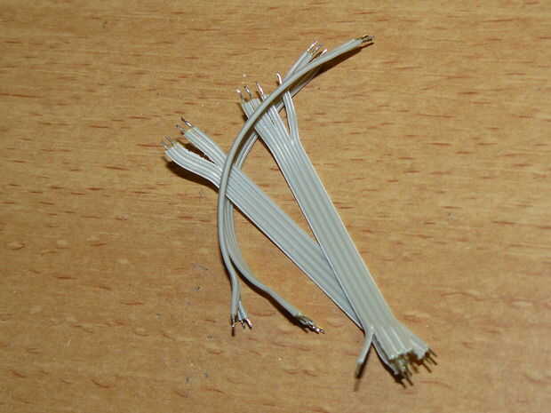 - El último paso es conectar los módulos junto con cable de cinta de 6 hilos. Asegúrese de usar bastante tiempo bandas de cable, realmente tendrá que cubrir una distancia con el cable. También incluyen la longitud de alambre en los titulares (alrededor de 8cm). Es más fácil resolver demasiado cable que es demasiado poco.