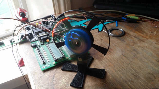 Actualmente estoy usando un 16F1937 con control PWM conectado a un controlador de motor para impulsar el motor de corriente continua. La velocidad del motor se controla entonces mediante un potenciómetro. Esto es actualmente una gran configuración de E-blocks pero fácilmente puede ser miniaturizado haciendo un PCB segundo. Cuando llego esto voy a publicar una actualización.