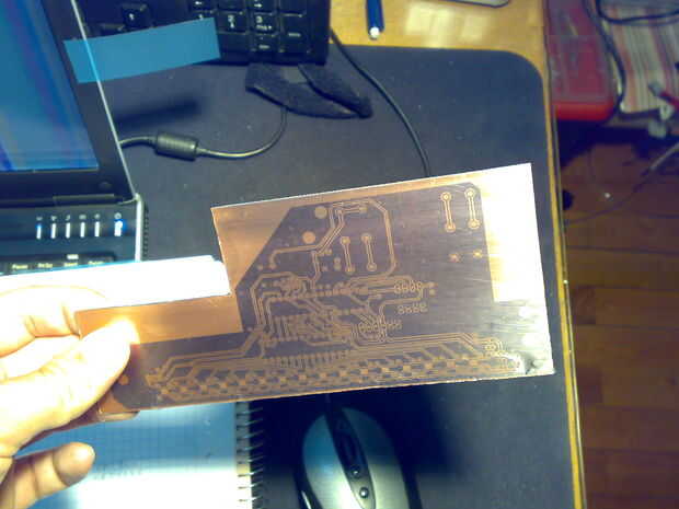 3 - exponga el cobre con fotoresistencia a través de la transparencia;