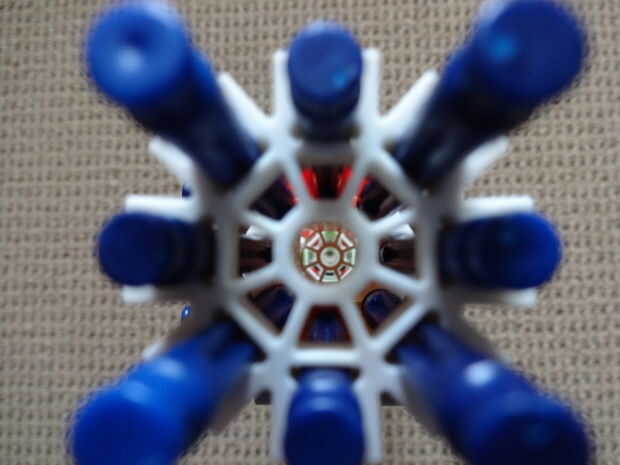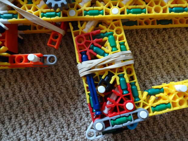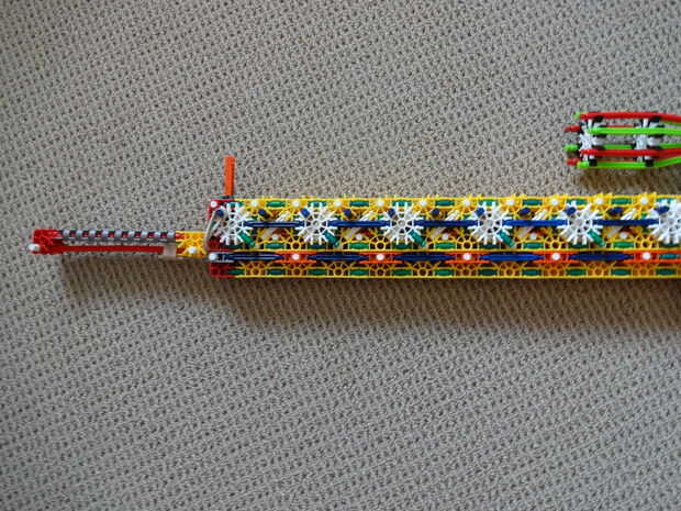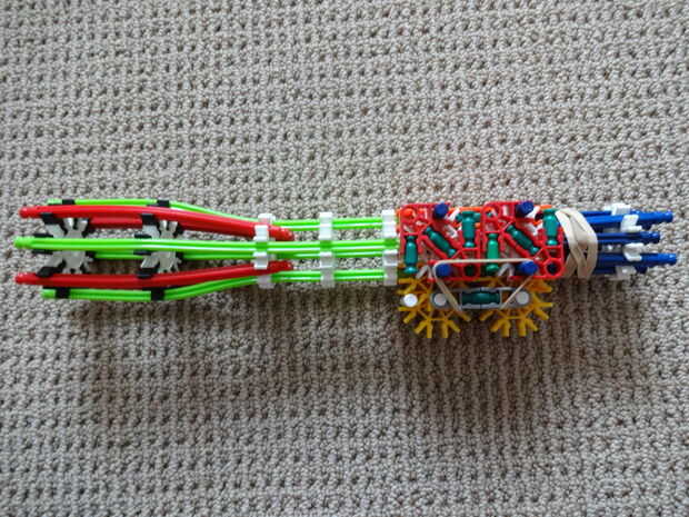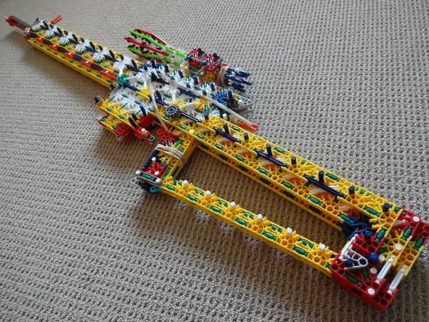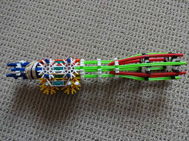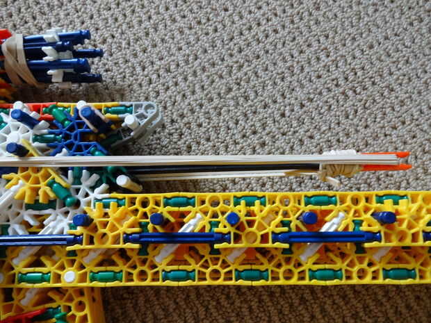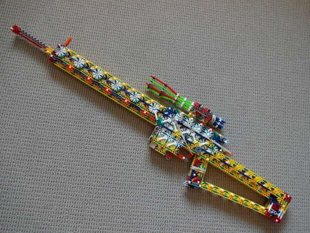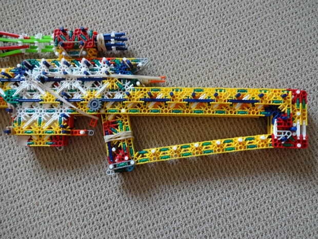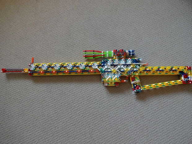 Es bastante pesado (de ahí el nombre), es 45 pulgadas de largo, utiliza casi todas mis piezas, y se parece a mi RSLW V.1 (en cuerpo solamente, no en mech o mag). La revista le permite configurarlo para cualquier calibre del mismo tamaño como, o más pequeño que una barra amarilla. Esto hace que la pistola bastante personalizable. No me gusta munición de barra, así que usar un gris oscuro, una ranura, conector con una barra verde que se le atribuye.