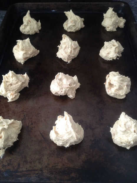 Dejar caer por cucharadas sobre engrasada y dar algo de espacio como de 2 pulgadas aparte. Cocer al horno precalentado 350 f por 12 minutos