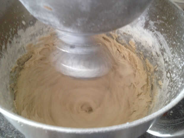 Cierna los ingredientes secos, añadir alternativamente con leche agria.