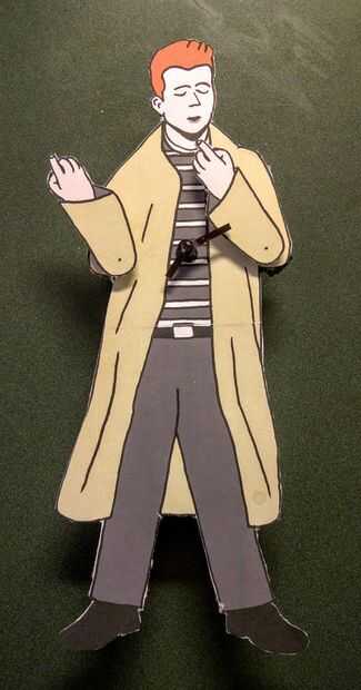 Se trata de una versión a gran escala de la Rick Astley Clock, un reloj con forma de Rick Astley y suena "Nunca va a darle para arriba" en la hora.Tiene las siguientes mejoras:Puede reproducir archivos audio múltiples. Más grande (19" alto)
