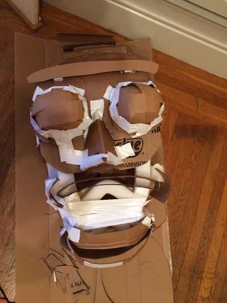 No tomo muchas fotos durante la construcción temprana de esta máscara de papel maché, pero es demasiado genial no para mostrar aquí.Un compañero que conozco tiene previsto abrir una cafetería temática monstruo y pretende servir Frankenberry cereales