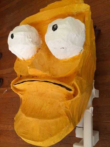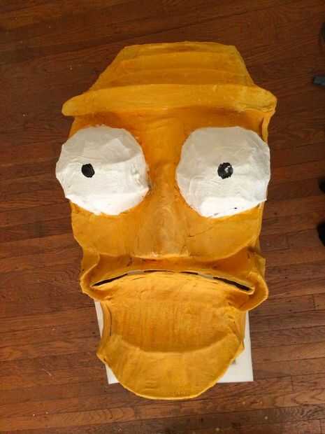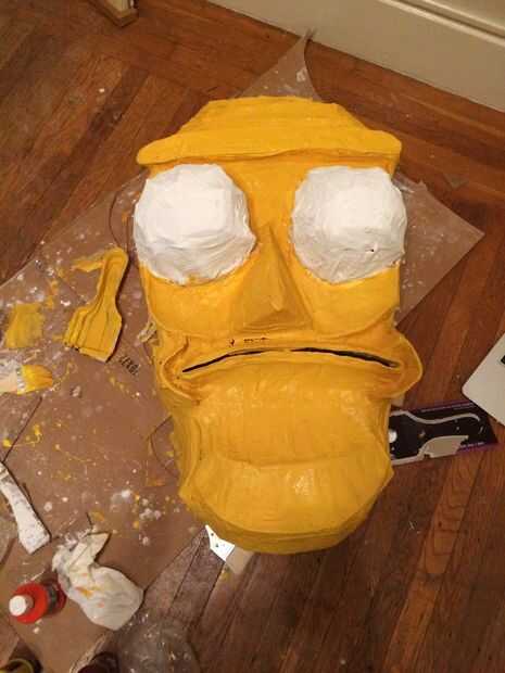No tomo muchas fotos durante la construcción temprana de esta máscara de papel maché, pero es demasiado genial no para mostrar aquí.Un compañero que conozco tiene previsto abrir una cafetería temática monstruo y pretende servir Frankenberry cereales