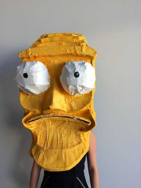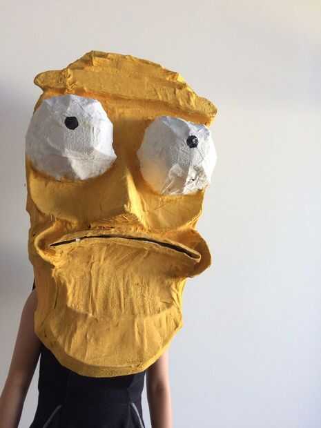 No tomo muchas fotos durante la construcción temprana de esta máscara de papel maché, pero es demasiado genial no para mostrar aquí.Un compañero que conozco tiene previsto abrir una cafetería temática monstruo y pretende servir Frankenberry cereales
