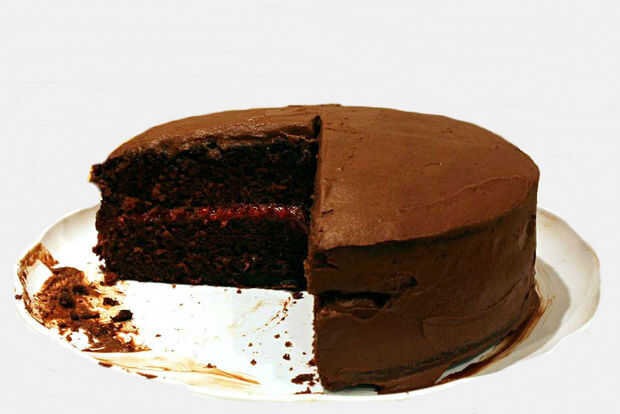 Pastel de chocolate oscuras estilo Nueva York es una de las tortas de chocolate más oscuras, más rico y más densas que nunca tenga el lujo de comer. Que consiste en capas de esponjoso pastel separados y cubierto por una escarcha de natilla-como grues