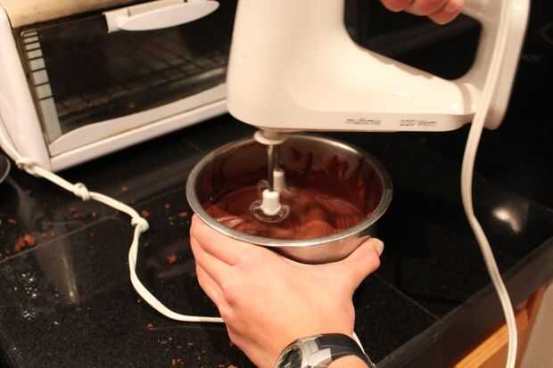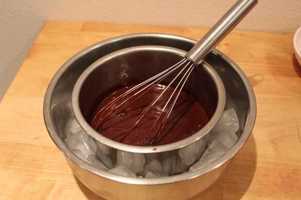 Sacar del baño de hielo y batir con un batidor hasta que se hiela es liviana y esponjosa.