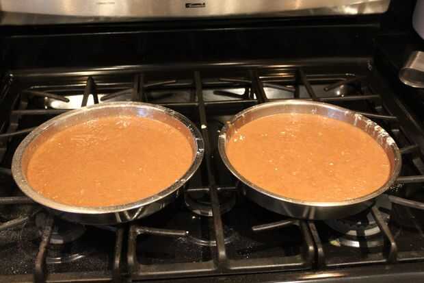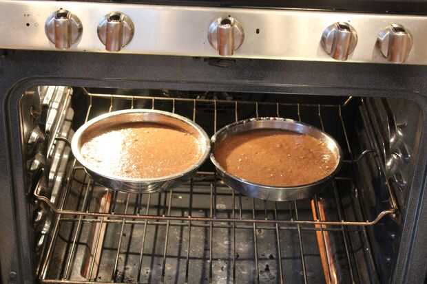 Las tortas se realizan cuando un palillo insertado directamente en el medio sale con sólo unas migajas húmedas.