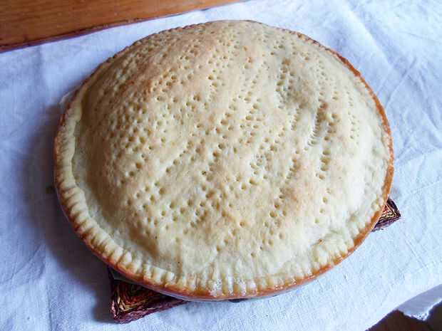 Esta focaccia se compone al igual que un pastel y relleno con queso mozzarella y jamón. Usted puede llenar con cualquier cosa que te gusta!