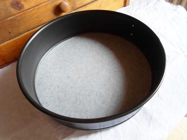 Primero de todo lo que necesitas para preparar tu pan redondo poner un pergamino en él. Usé este pan que era perfecto para esta cantidad de masa.