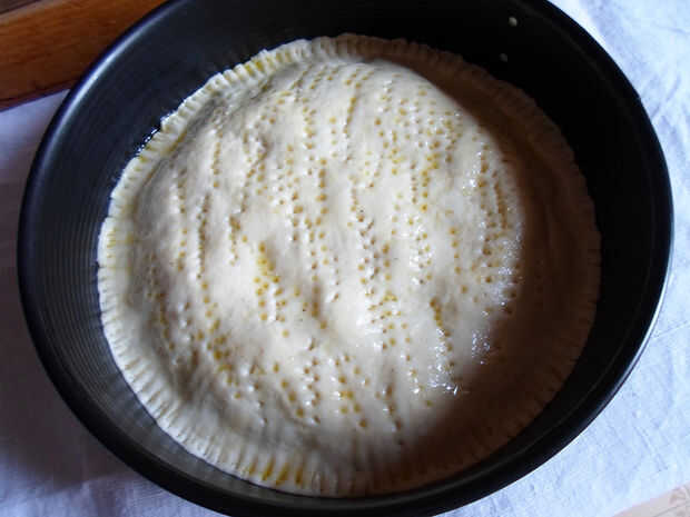 Una vez más, pinchar los discos con un tenedor y extender aceite de oliva por encima.